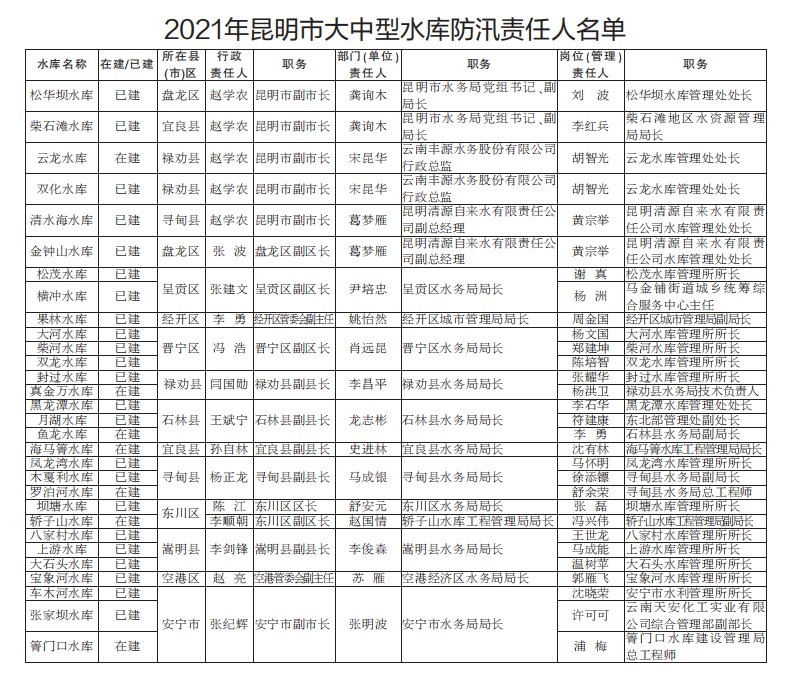 2021年昆明市防汛責(zé)任人公布/積水路段