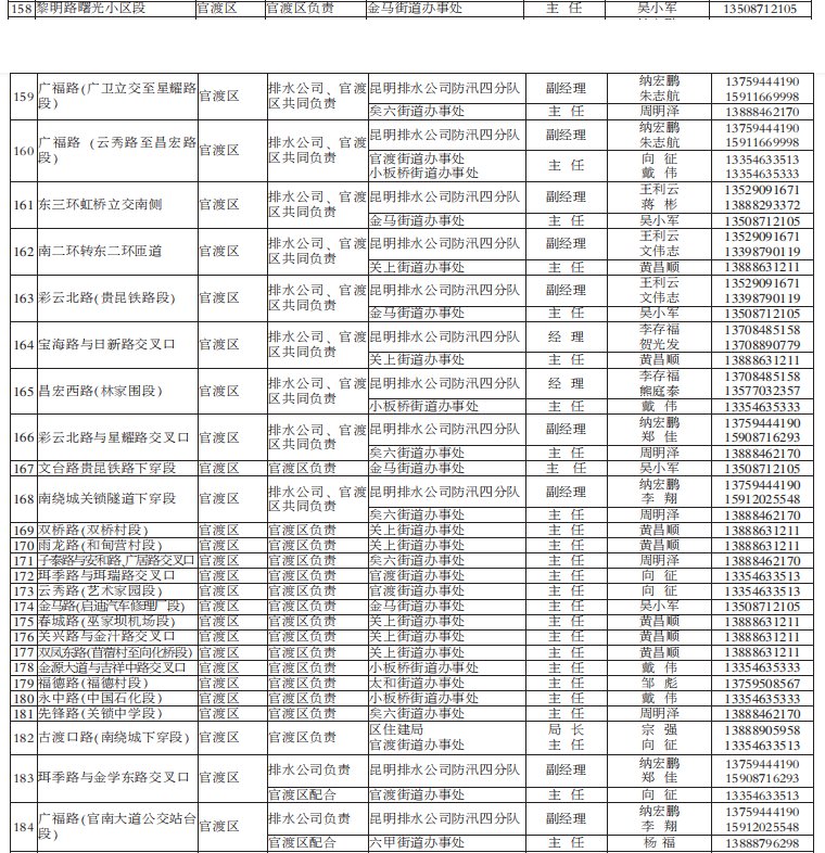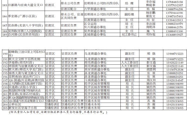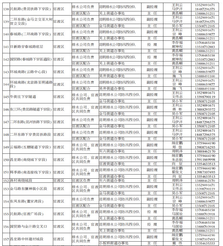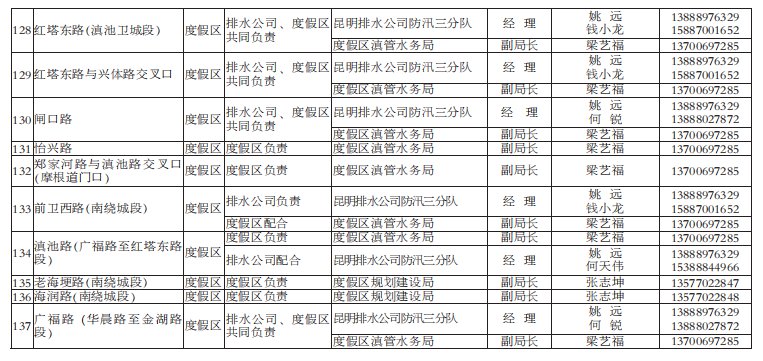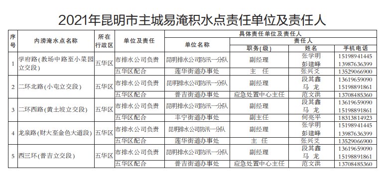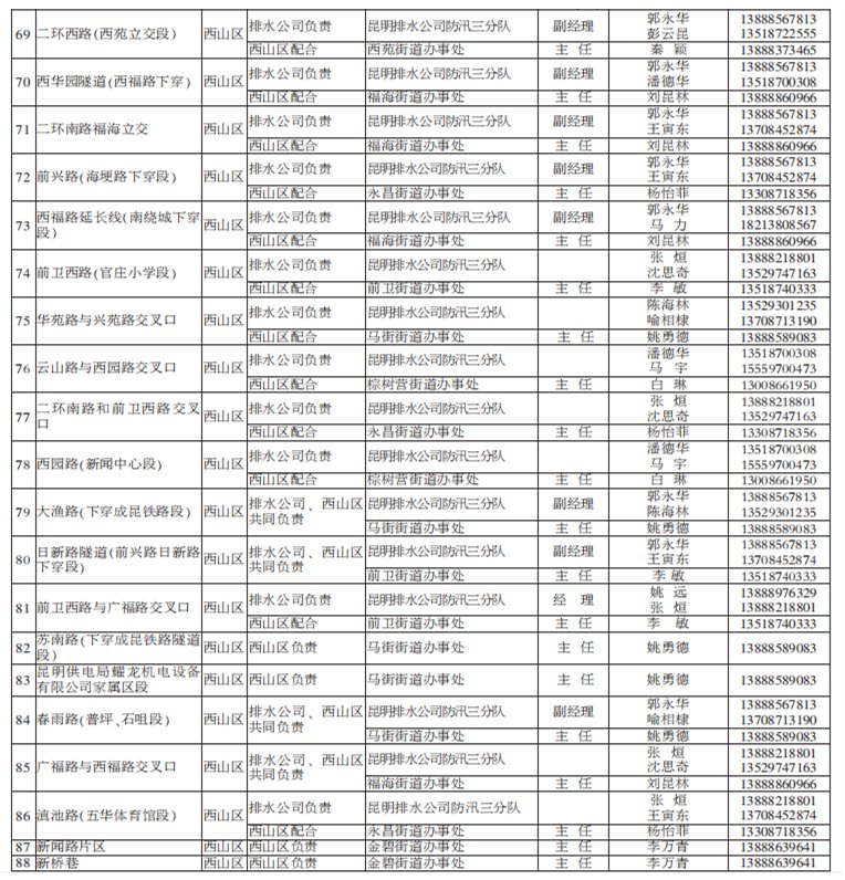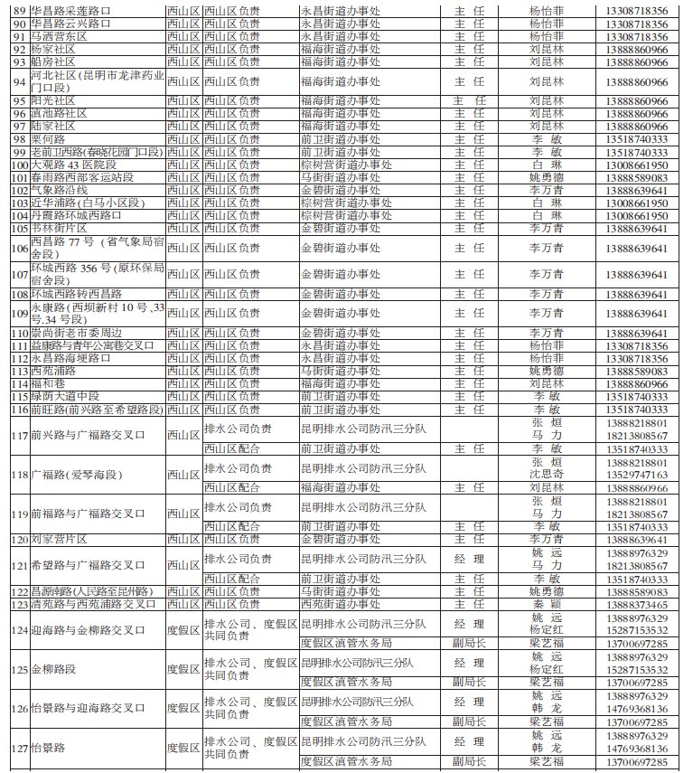 昆明市有多個(gè)淹水點(diǎn)(附負(fù)責(zé)人電話/名單)