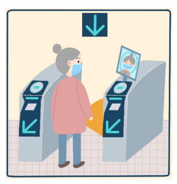 1、刷臉時,可佩帶口罩,但不能佩戴帽子或墨鏡過閘。