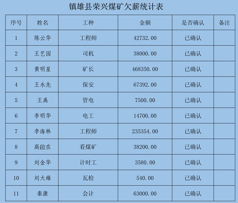 一、榮興煤礦欠薪復(fù)核確認(rèn)情況