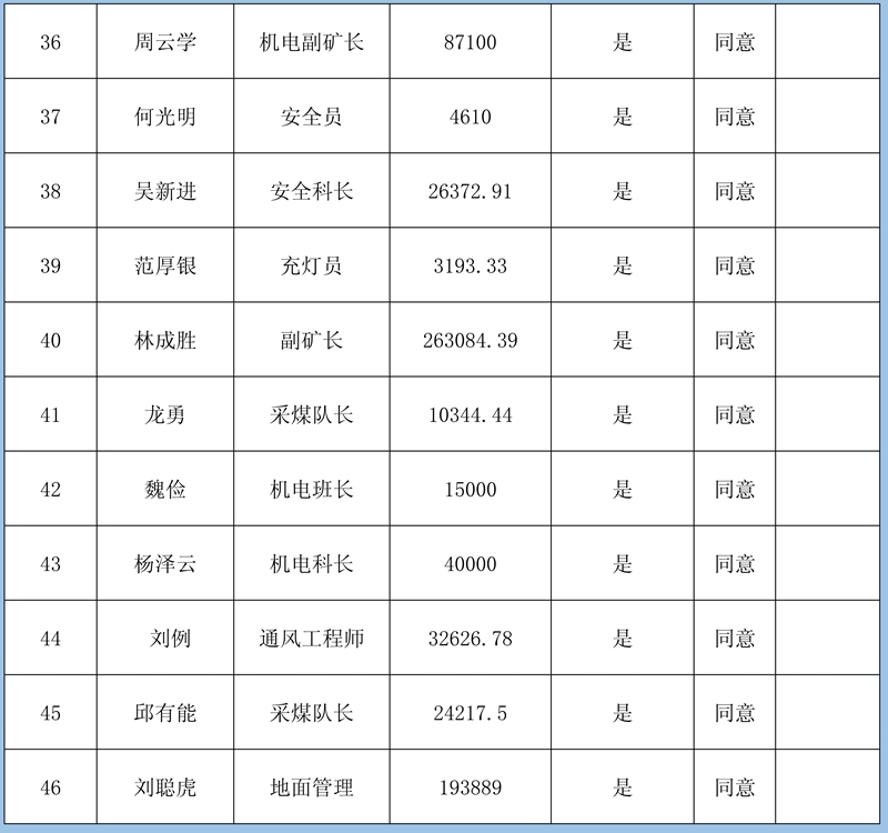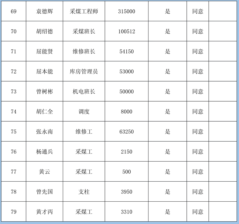 3、其他情況:金竹林煤礦原法人是李慶曾,2008年李慶曾轉(zhuǎn)讓給馮守黨,股東當(dāng)時(shí)有馮守元、葉青榮。2020年12月因馮守黨個(gè)人征信出問(wèn)題,法人轉(zhuǎn)給黃益區(qū)。金竹林煤礦本次登記的47條欠薪申報(bào),均提交了有煤礦方開出的工資欠條等相關(guān)依據(jù),煤礦方委托人已簽字蓋章認(rèn)可。