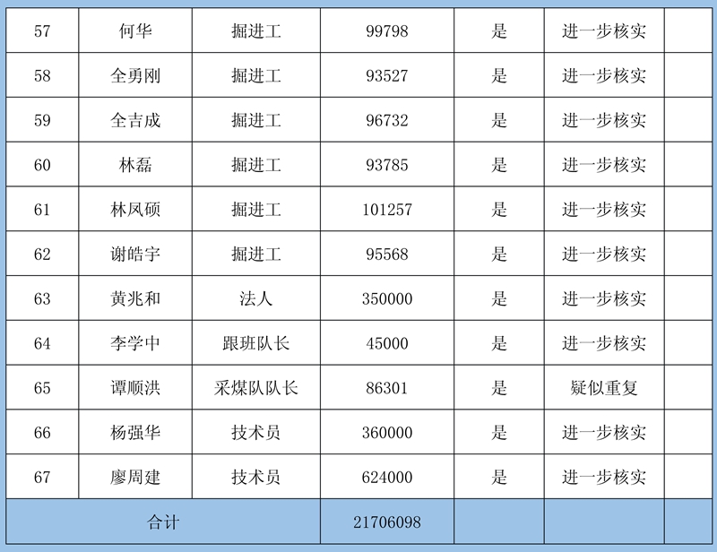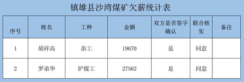 三、永久煤礦欠薪復(fù)核確認(rèn)情況