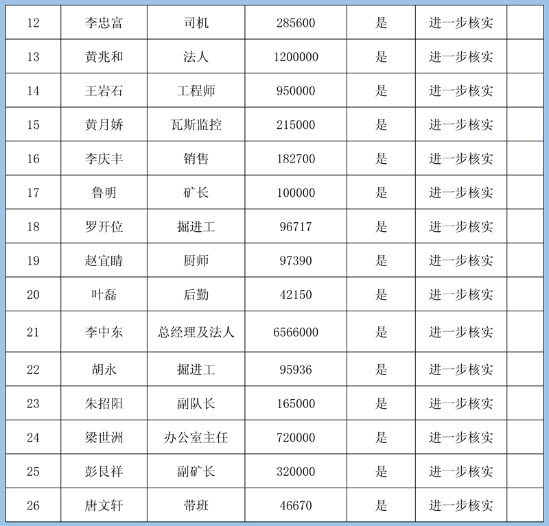 3、其他情況:煤礦方簽字認(rèn)可的216條欠薪申報(bào),均持有煤礦方開出的工資欠條(蓋章)或是法院判決書等相關(guān)依據(jù),實(shí)際用工情況無(wú)法核實(shí)。