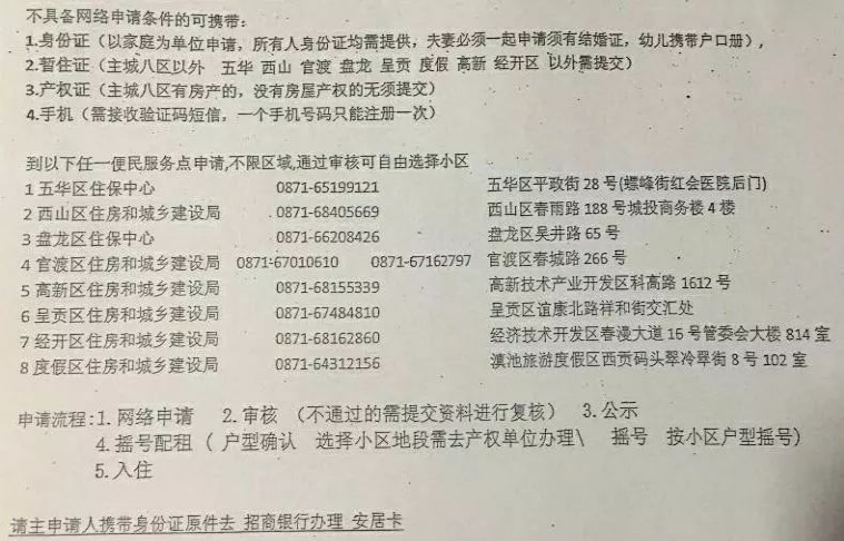 3、沒有享受過其他保障性住房。(在其他州市享受過公租房或其他保障性住房的,不能在昆明申請(qǐng)。)