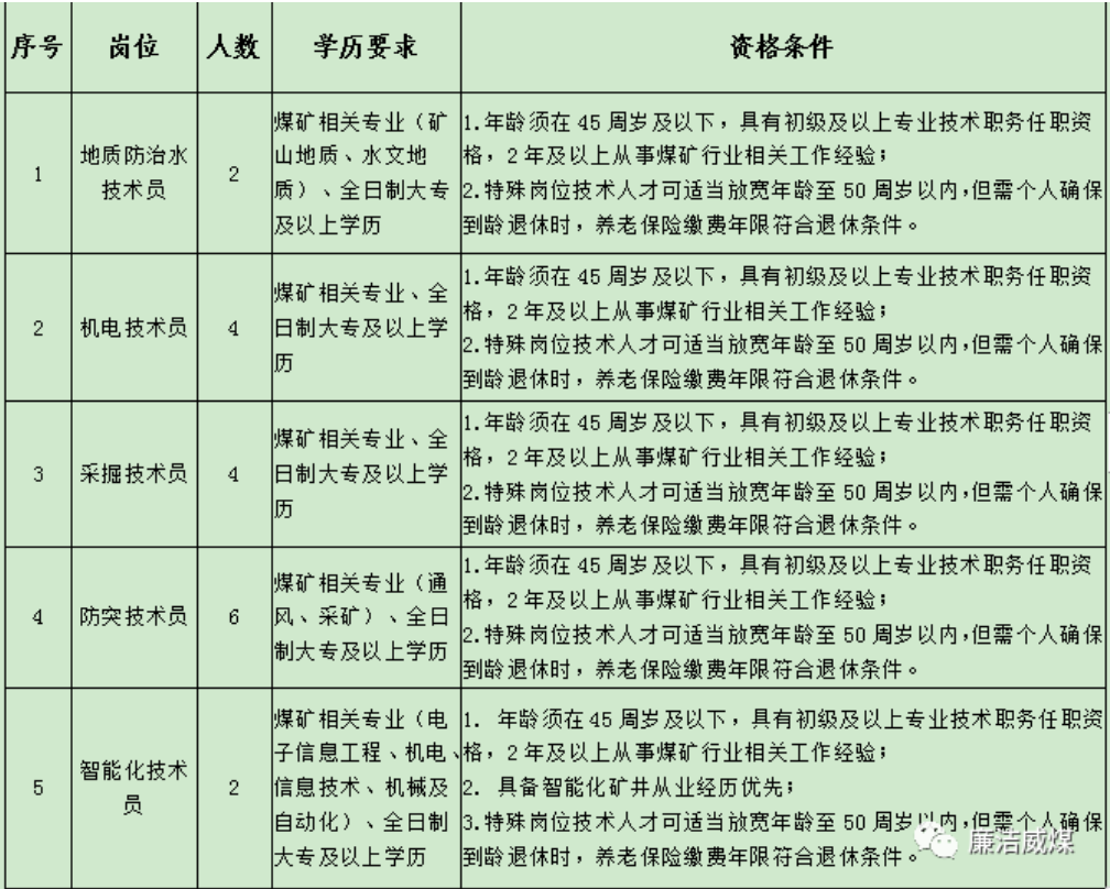 云南能投威信煤炭有限公司計劃招聘專業(yè)技術人才18名,具體招聘崗位及資格條件下表: