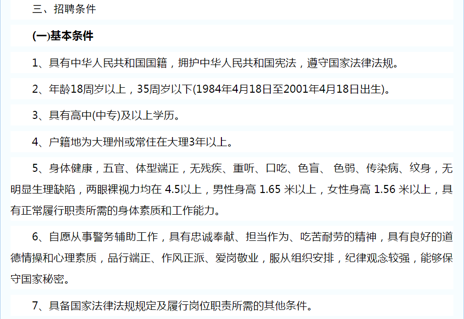大理州公安局關(guān)于公開招聘特勤看護(hù)支隊(duì)警務(wù)輔助人員的公告