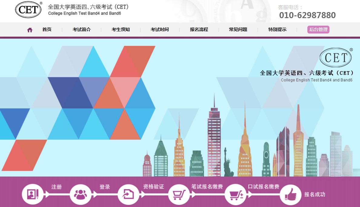 考生在報(bào)名期間(上半年3月20日12:30——4月10日20:00,下半年9月20日12:30——10月10日20:00)登錄全國(guó)大學(xué)英語(yǔ)四六級(jí)考試網(wǎng)站(