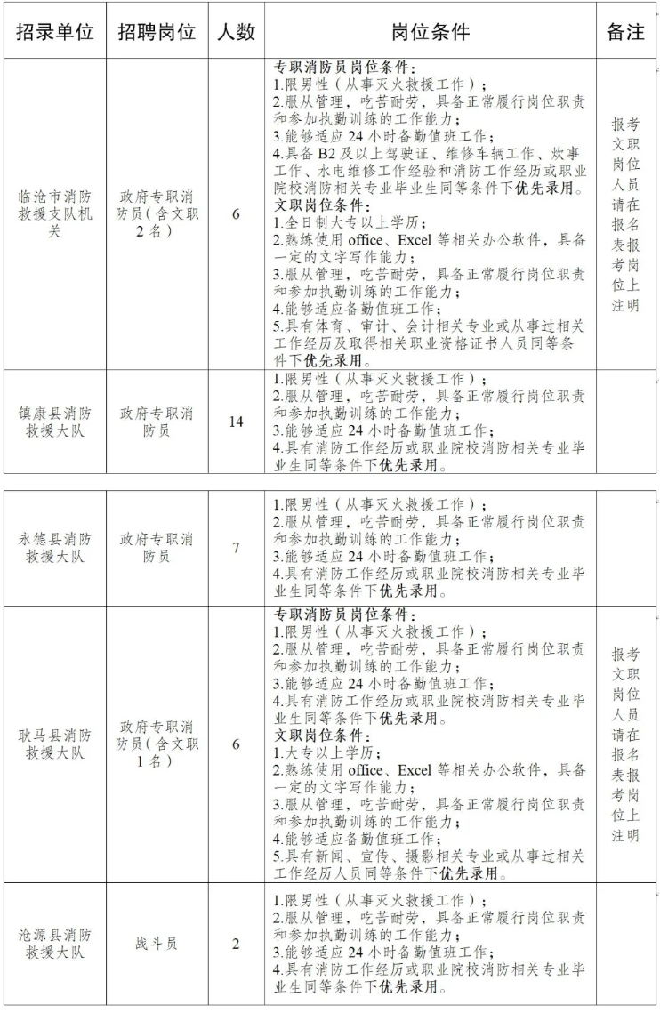 臨滄市消防救援支隊(duì)2021年公開(kāi)招聘政府專職消防員的公告