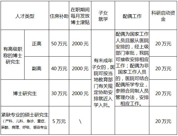 按國家有關政策管理和享受相關待遇外,并按醫(yī)院有關規(guī)定享受引進高層次人才待遇,具體如下: