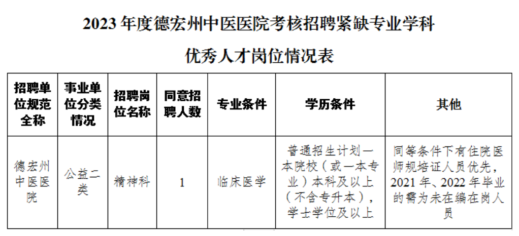 德宏州中醫(yī)醫(yī)院2023年考核招聘緊缺專業(yè)學(xué)科優(yōu)秀人才公告