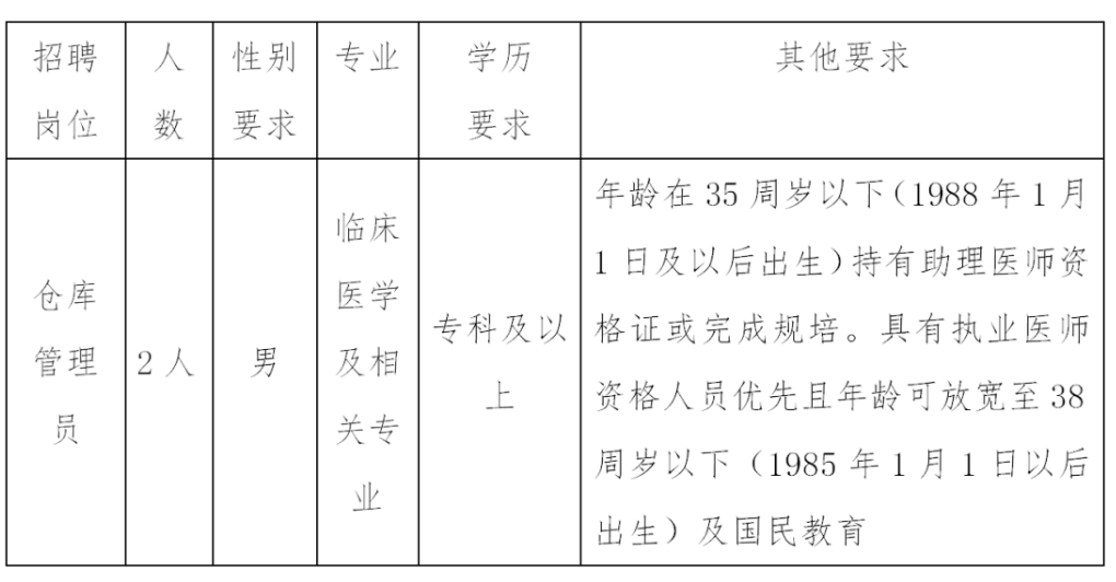 5.具備扎實(shí)的醫(yī)學(xué)專業(yè)理論知識和實(shí)踐操作技能,熟練操作規(guī)程,工作需要強(qiáng)體力勞動(隨時(shí)搬運(yùn)倉庫內(nèi)重型物資)。