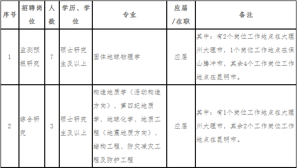 云南省地震局2019年度事業(yè)單位公開(kāi)招聘公告