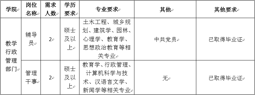根據(jù)學院工作需要,現(xiàn)面向社會補充招聘教師及管理干事,具體要求如下: