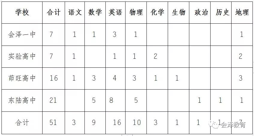云南省曲靖市會澤縣普通高中教師招聘公告2號