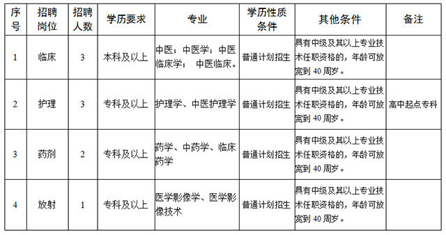 詳見附件1《曲靖市馬龍區(qū)中醫(yī)醫(yī)院2019年公開招聘編外聘用人員計(jì)劃表》。